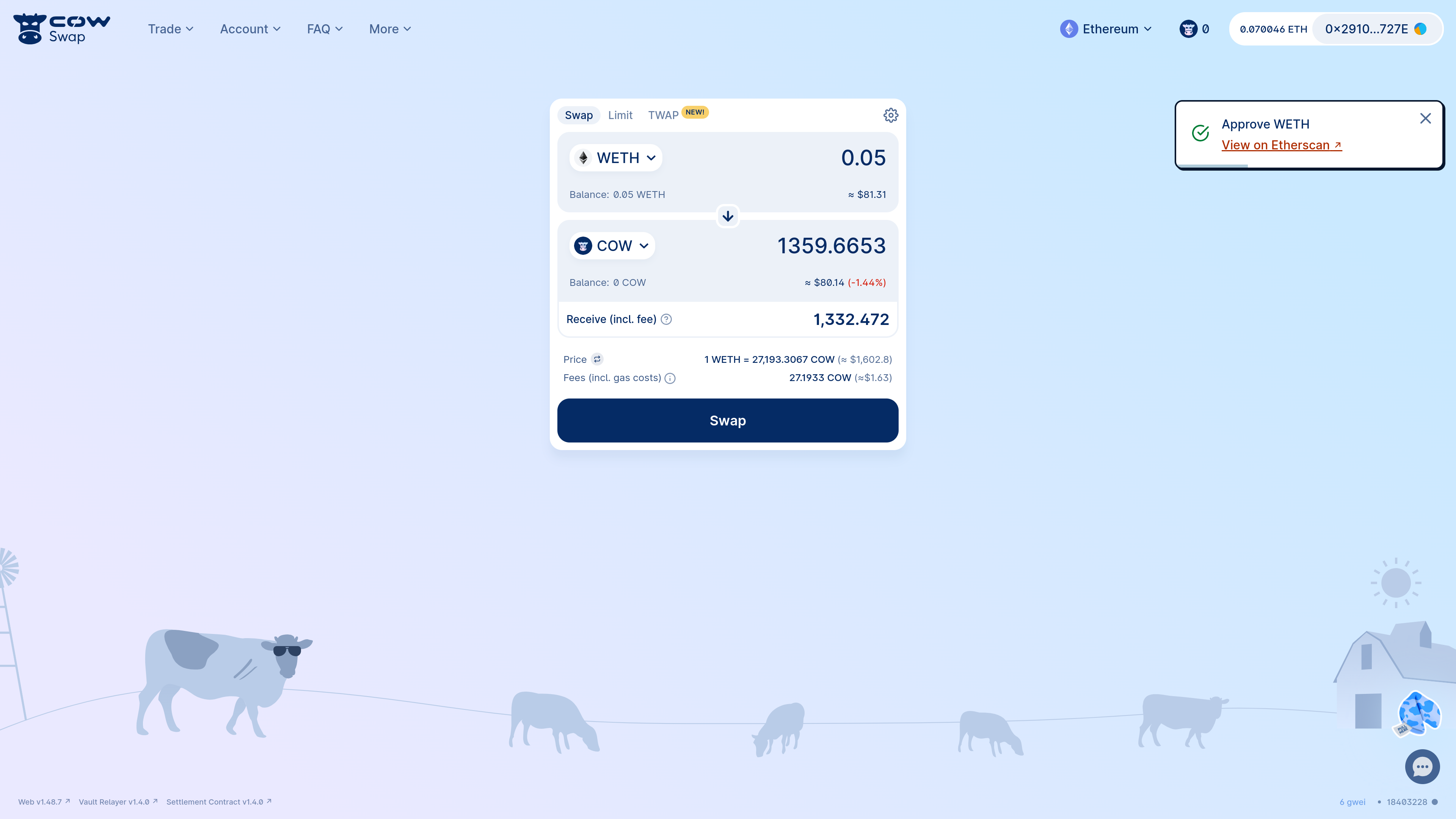 Swapping is the bread and butter of CoW Protocol! Let's swap some tokens!