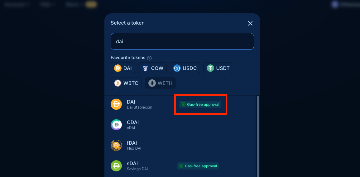 Some tokens, such as USDC, DAI, COW and many others support gasless approvals. This means that you can approve the vault relayer contract to spend your tokens without having any initial gas for an on-chain transaction. This is a great way to save on gas costs!