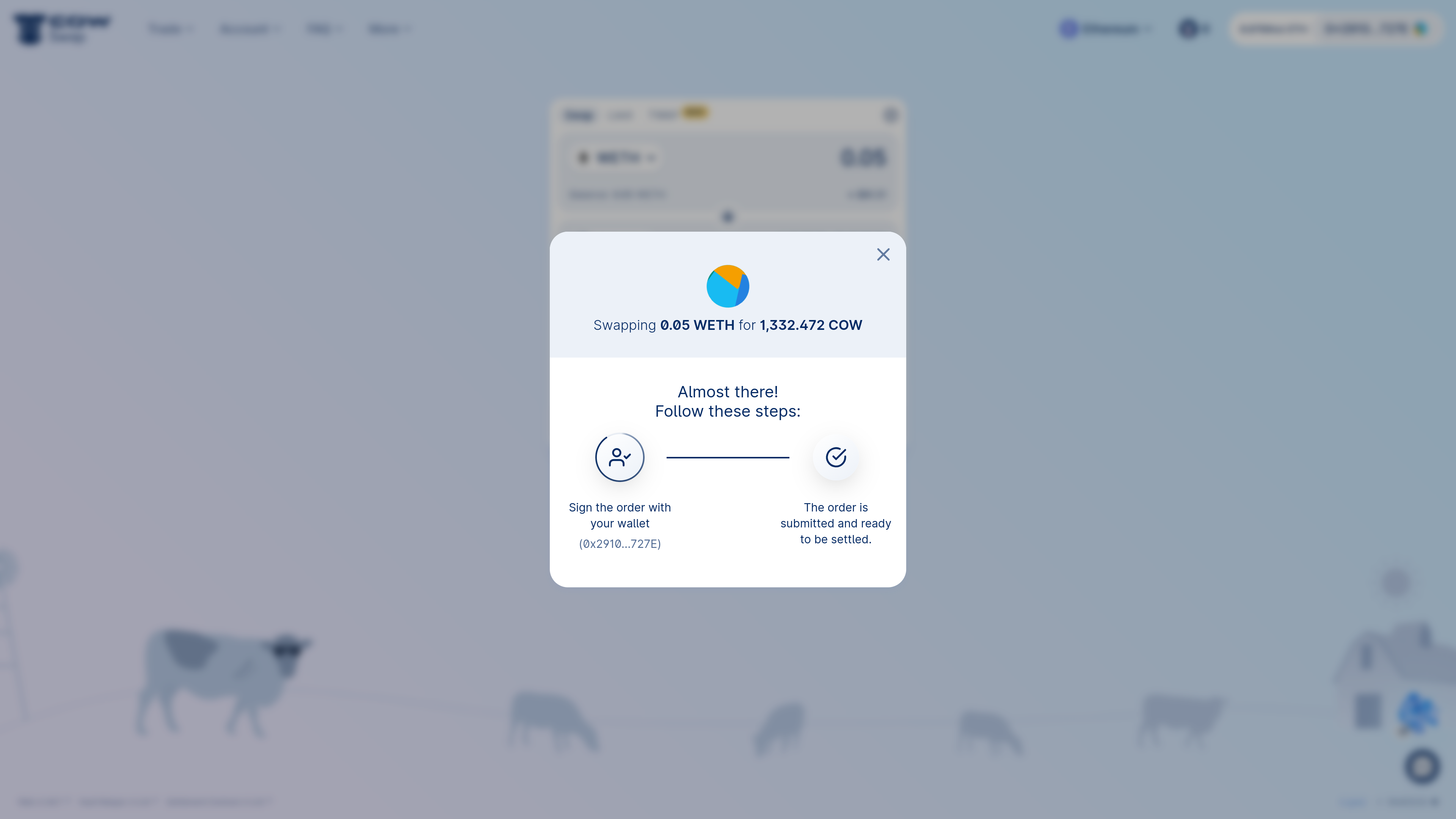 Once the order has been signed, it will be submitted to CoW Protocol where it is now ready to be executed! 🎉